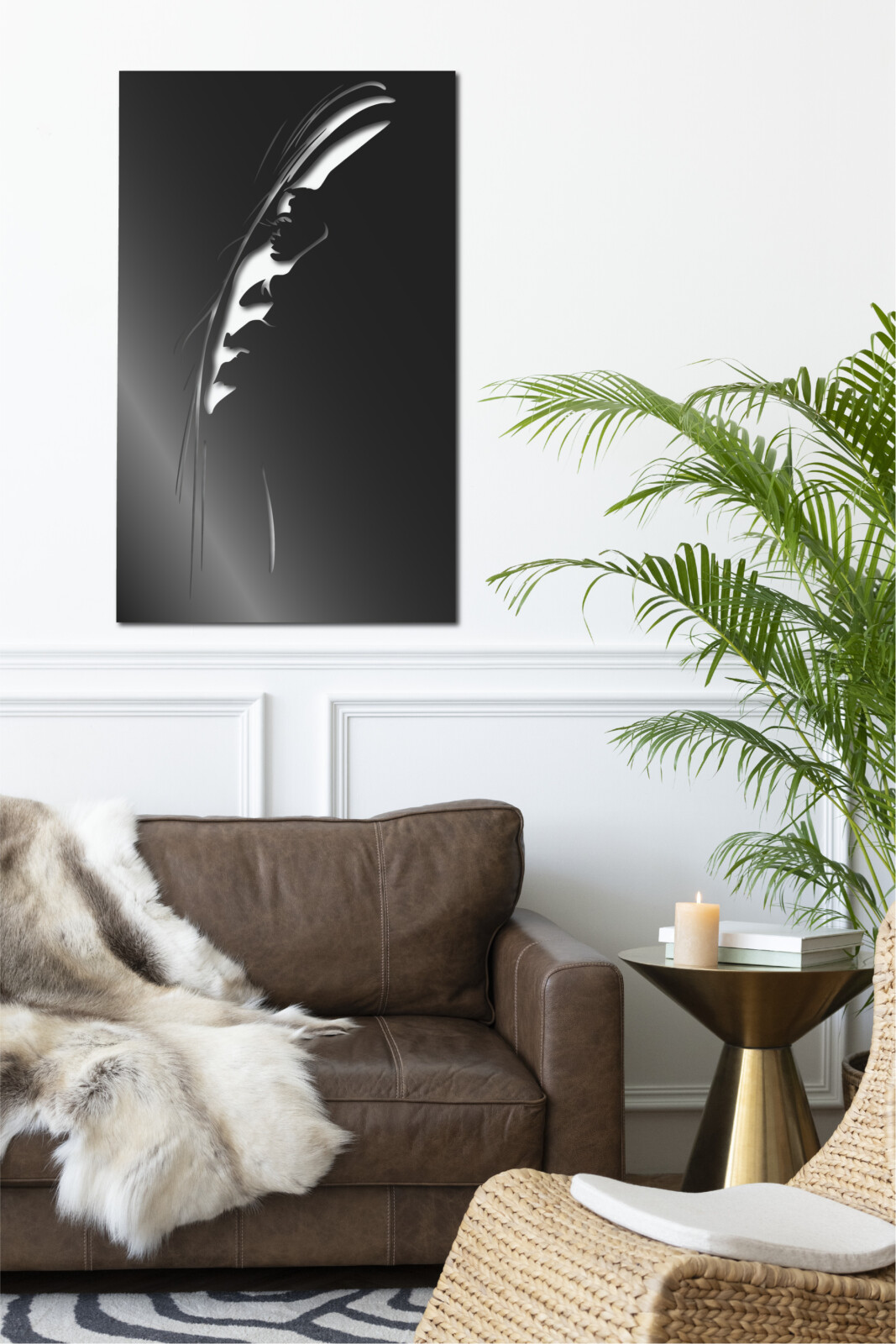 Obraz wykonany w technologii CAD/CAM, został stworzony ze stali, co nadaje mu unikalny charakter i wyjątkową estetykę. Obraz ten stanowi połączenie surowości metalu z delikatnością abstrakcji, co przyciąga uwagę i prowokuje refleksję.