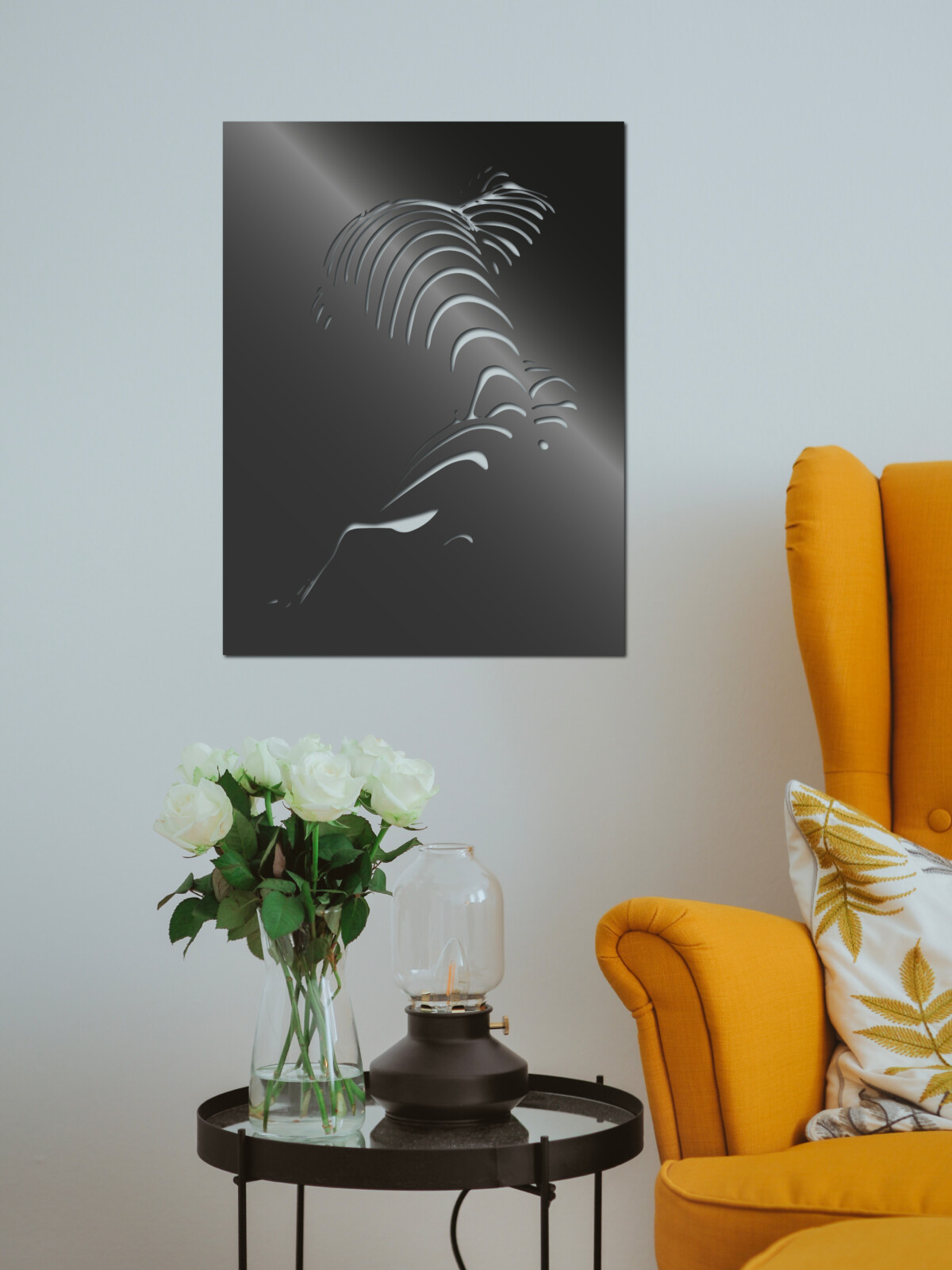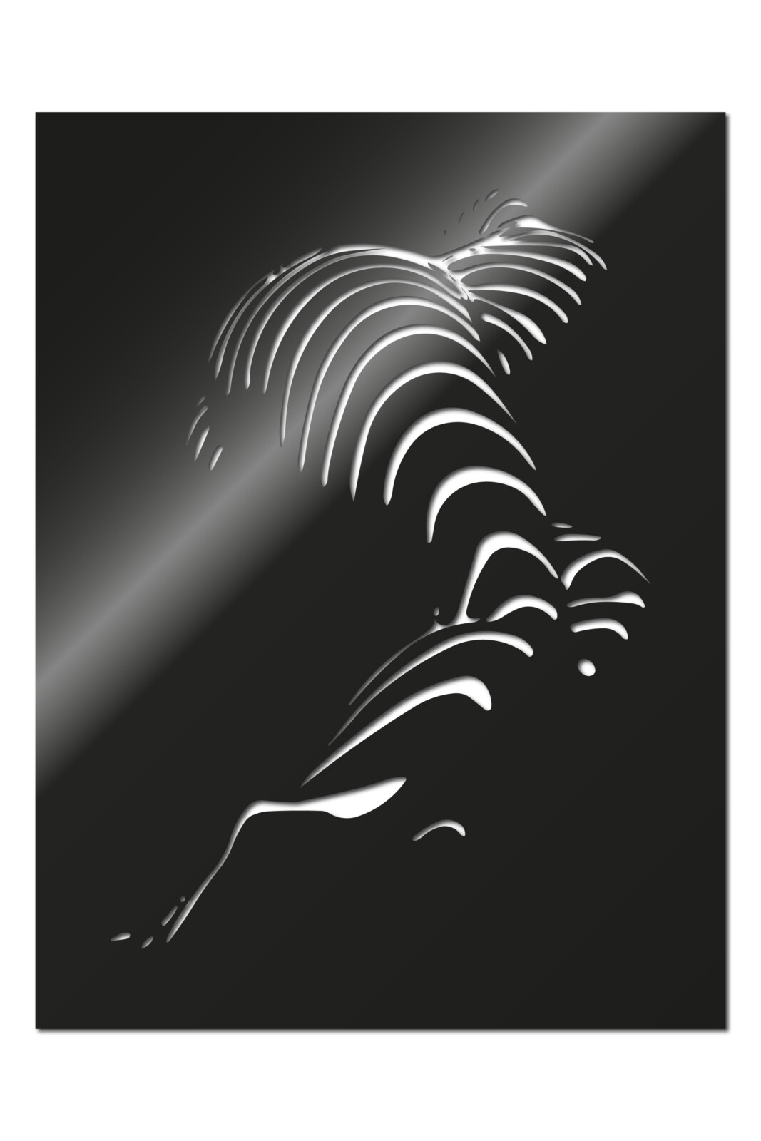 Obraz wykonany w technologii CAD/CAM, został stworzony ze stali, co nadaje mu unikalny charakter i wyjątkową estetykę. Obraz ten stanowi połączenie surowości metalu z delikatnością abstrakcji, co przyciąga uwagę i prowokuje refleksję.